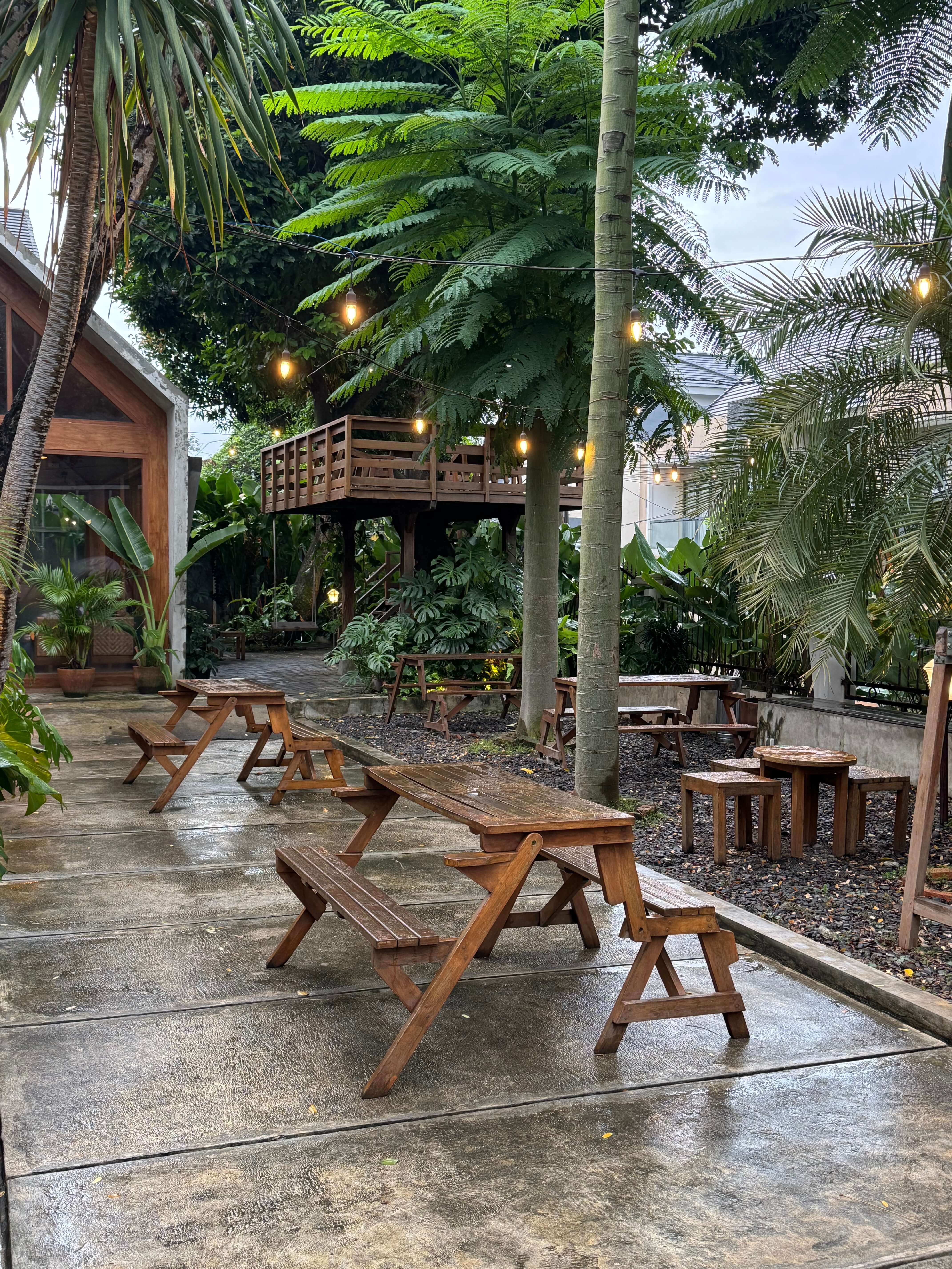 There’s plenty of seating with different vibes to choose from. Prefer indoor seating? You have two options—one near the brewing machines and cashier, and another in a separate building within the same area (you’ll need to step outside to get there!). If you’re more into outdoor seating, there are choices too. Want to sit with a friend? There are seats under a tree with a small table. Need an outdoor spot to work? There’s a covered seating area right under the roof of the main house. Don't forget the treehouse as a nice spot to enjoy the vibes.