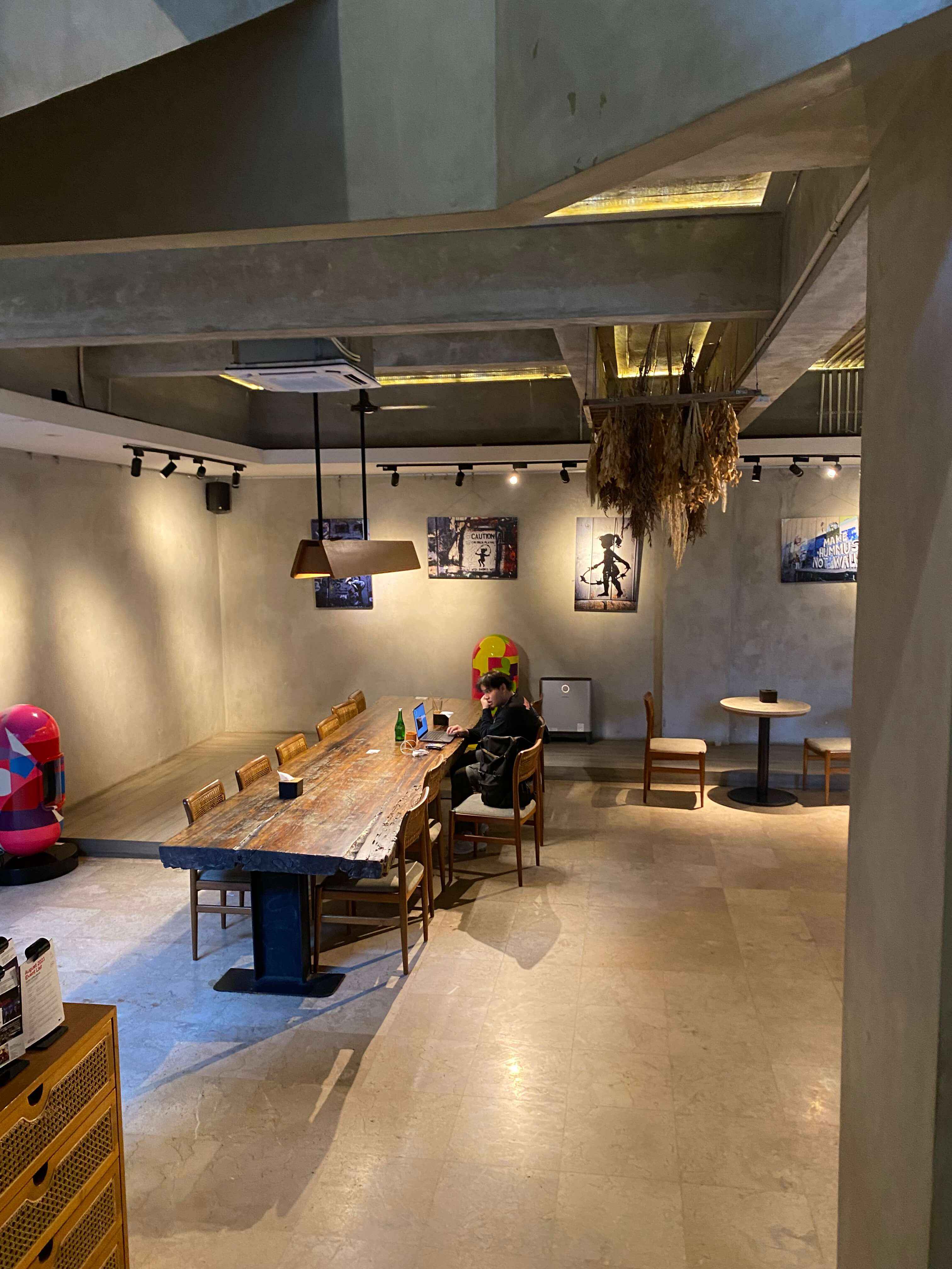 one word for this cafe: spacious. there are a loooot of seating configurations. mixed from indoors and outdoors, individual, small groups, and large groups. despite the place not being fully air-conditioned, it was comfortable for work. thanks for its good interior design and layout.